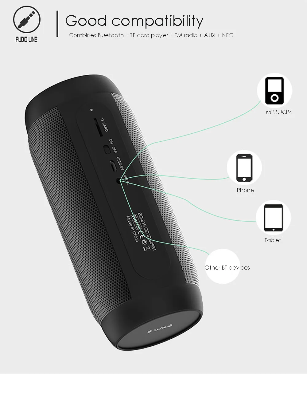 ● Combines Bluetooth + TF card player + FM radio + AUX + NFC.
