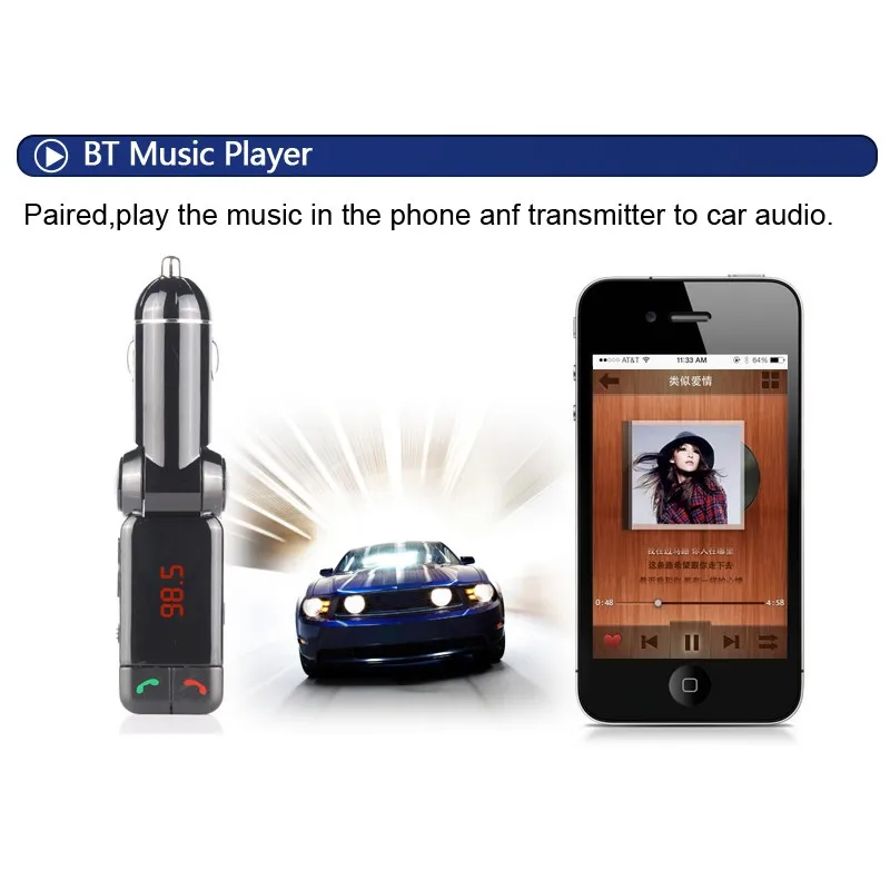 Car Bluetooth FM Transmitter Hands Free Bluetooth Car Kit MP3 Audio Player Wireless Modulator USB Charger BC06 for Mobile Phone A1