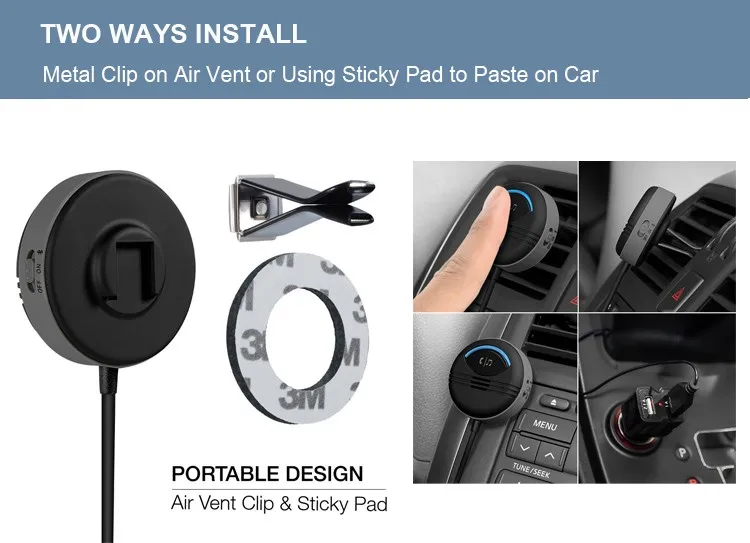 - TWO WAYS INSTALL: STICKY PAD / CLIP on AIR VENT
