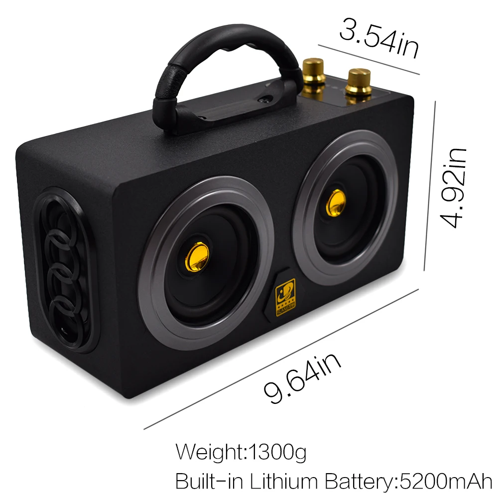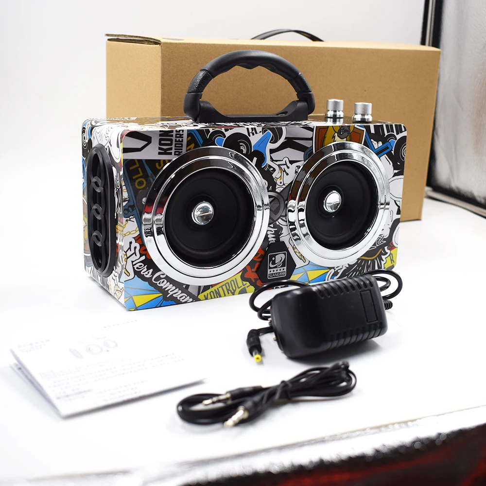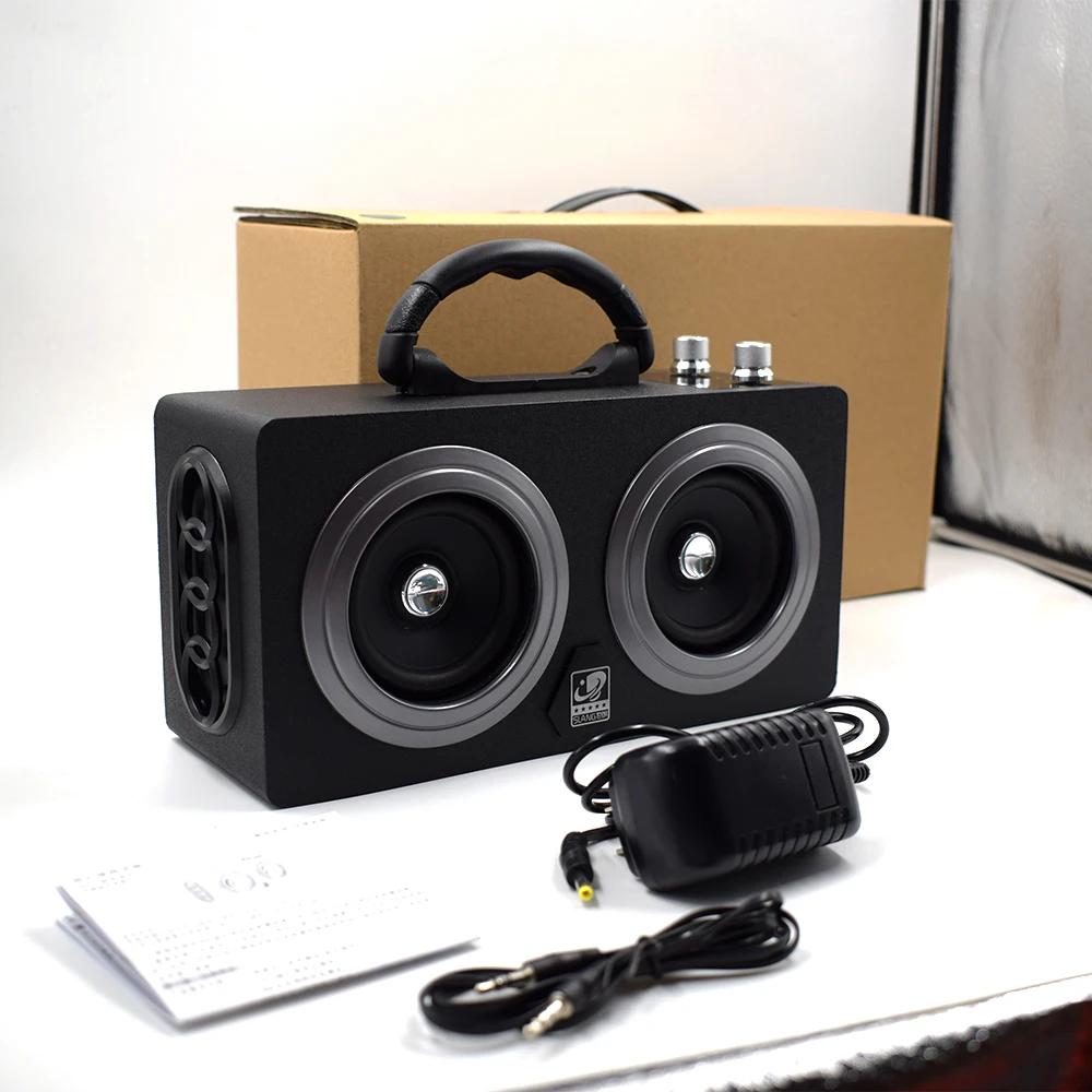 Support function: Bluetooth / U disk / TF card / AUX / FM / voice call Channel: 2.0 (stereo) Speaker system: full range low frequency booster radiation system Speaker unit: 80mm (3.0 inches) Output power: 10W + 10W Frequency response range: 90Hz-22KHz Sensitivity: 85dB Interface: 3.5mm DC Charging: DC9V-2A Battery capacity: high-density lithium battery (built-in 4000mAh) Product weight: 1.3KG