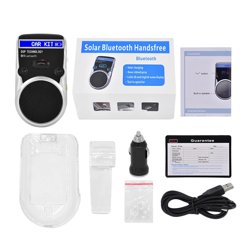 Solar Powered Bluetooth Car Kit LCD Display Hands Free Bluetooth Speaker with car charger