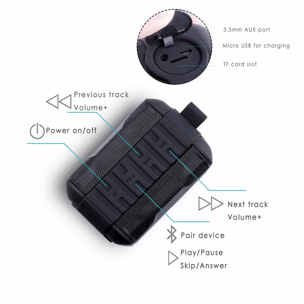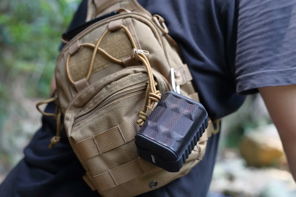0.25kg weight allows you take the speaker anyplace. A metal hook and the anti-skid rubber surrounding the speaker make the use easier and more convenient