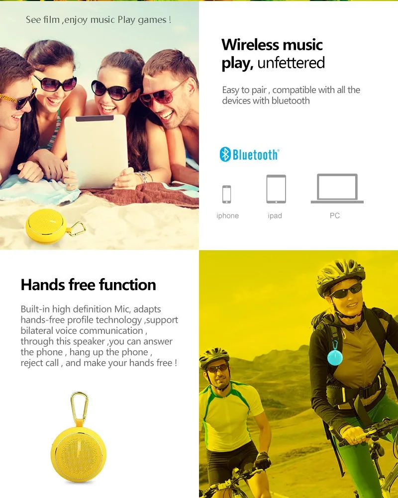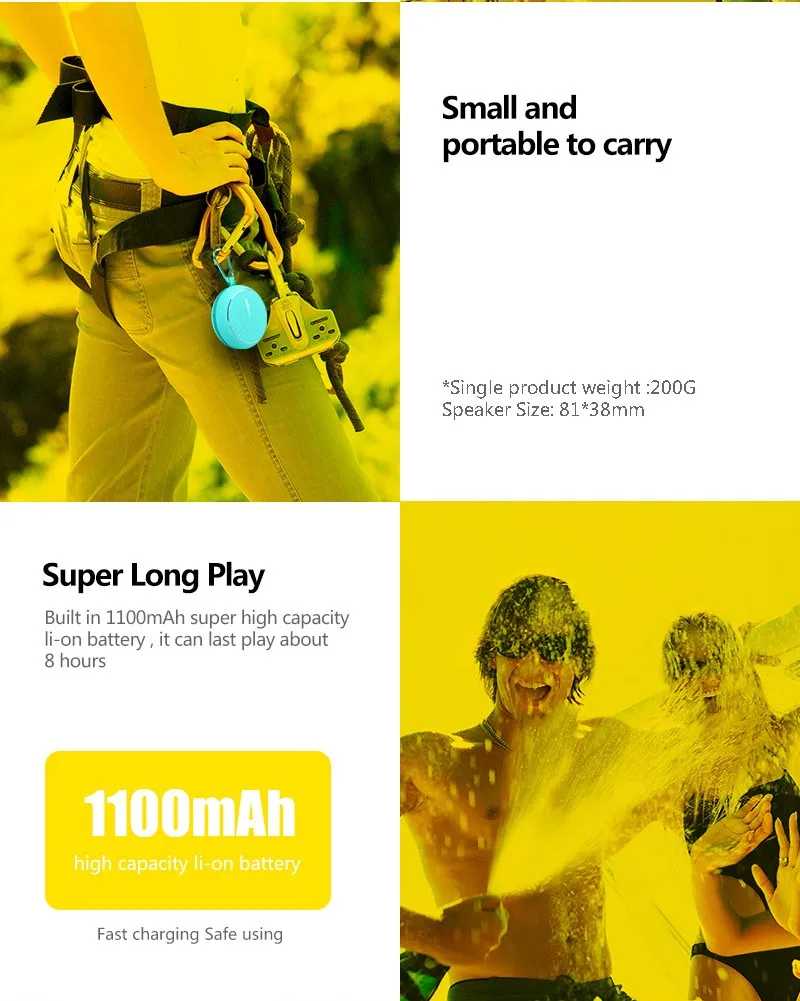 ◎Built-in 1100mAh li-ion battery, save-power chip control system, can support playing music for 10 hours, meet the demand of all-weather outdoor music playback.