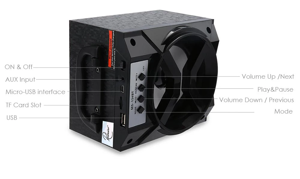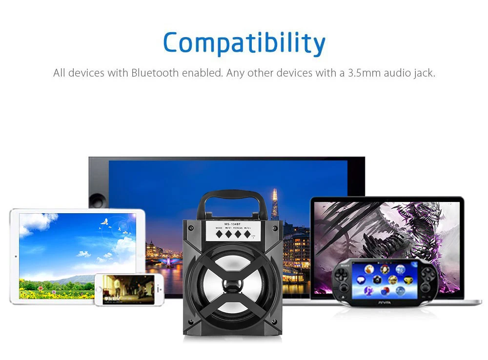 Package Contents: 1 x MS – 134BT FM Radio Wireless Bluetooth Speaker, 1 x USB Cable