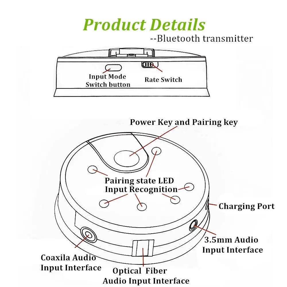 Transmitting high-definition music to bluetooth receiver with 3 kinds of ways: 3.5MM AUX, optical (TOSLINK) digital audio and coaxial