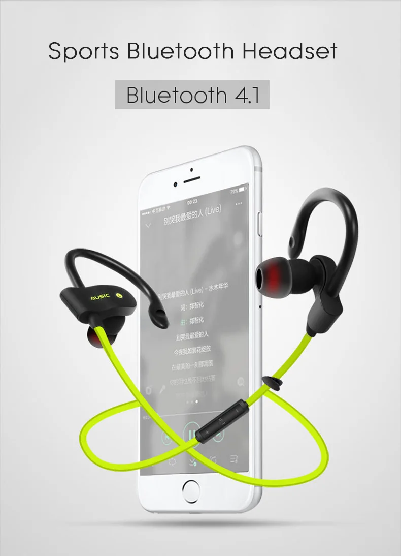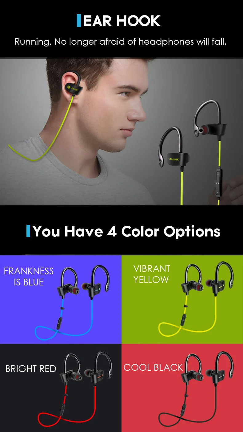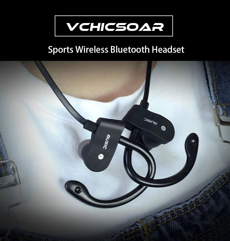 Vchicsoar 56S Bluetooth Earphone Sports Running Wireless Headset V4.1 Stereo Bass Portable Ear Hook Earphones with Microphone