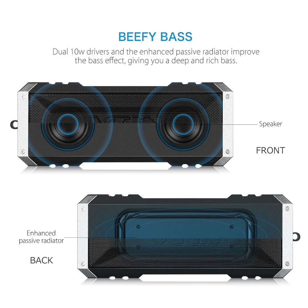 - The enhanced passive radiator improves the bass effect, giving you a deep and rich bass without distortion.